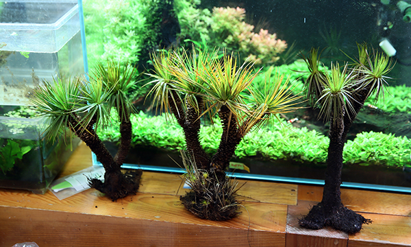 プラで出来てる置物か!!ってのが第一印象。 ところが触ると柔らかい、ホンモノっぽい、ってのが素人的第一印象。 聞くとカヤツリグサだってのが、さらに見た目と合致しない。 なんじゃこれってニヤけてしまいました。 日本初入荷の植物だそうだ。 値段聞いたらおっ高い!!。 そこで即座に仕入れを敢行した流れ・・・。 今回この3つだけ。