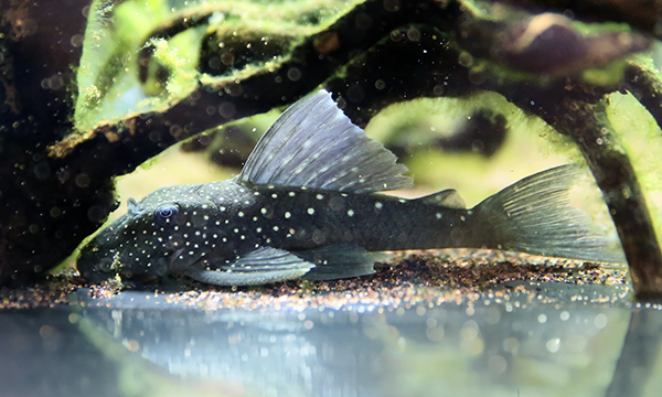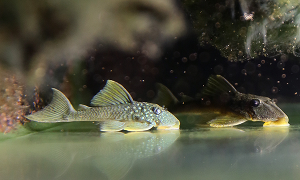 グリーンイエローフィンは小さめだったので5尾連れてきた。 これも十分な数が来ないコロンビアからのプレコ。 これも低pHでも死なないヤツ。 ディスカス水槽で重宝するヤツ。 ちょっと前までの表現は、アドケタ水槽のコケ取り用、って言ってたヤツらです。 ガラスに縦になって他ので90°転換。緑色のガラス面が下になっ取るでしょ。 ApSandは左側面の壁に・・・。 これらもうちのコケ取りスタッフに。 もちろんストック期間を経てから本水槽に。 どこの水槽で仕事してもらうか、状態5尾とも立ち上がってくれるか、行く末見ながら判断します。 とりあえず連れてこられて良かったよ!